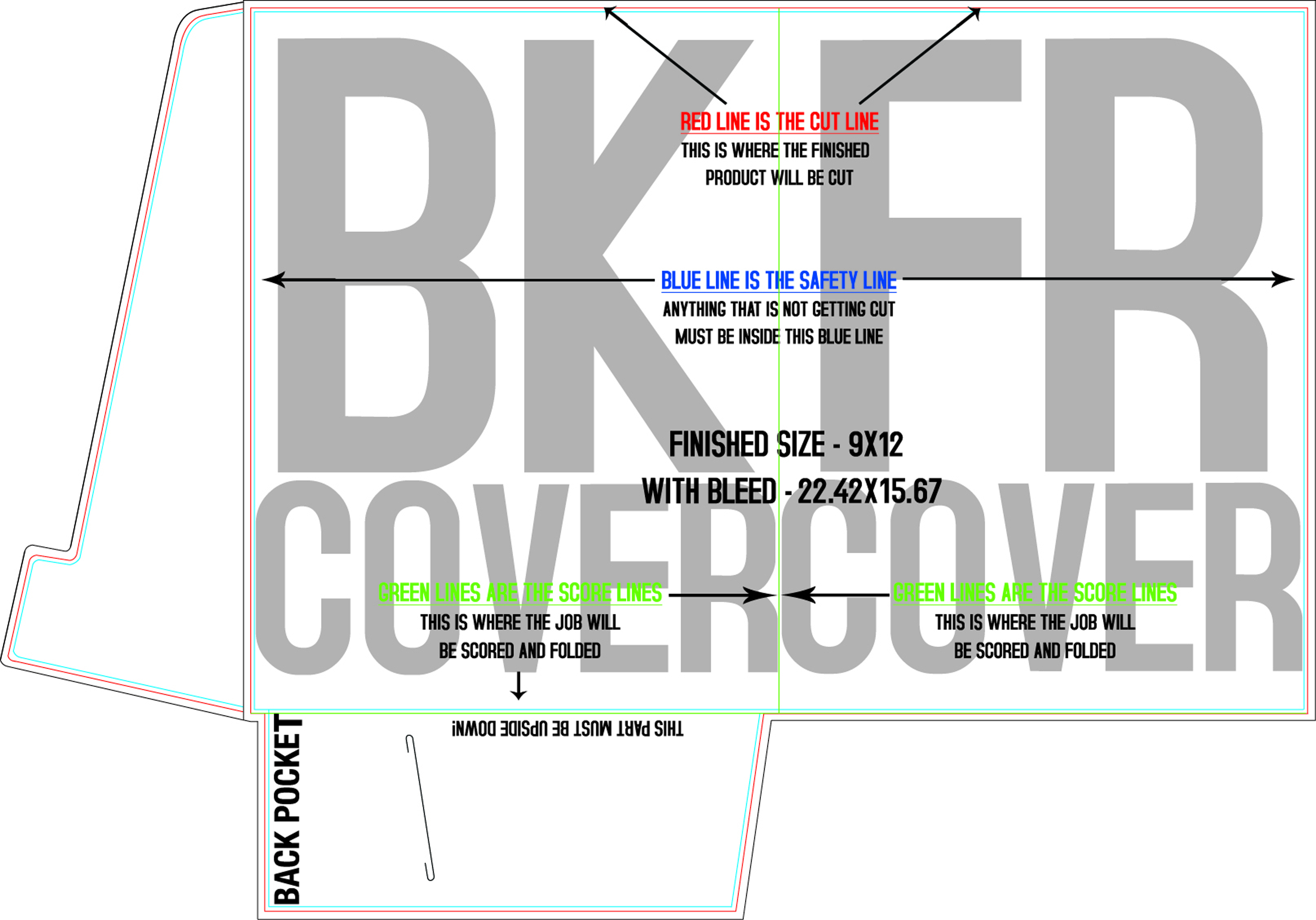 Para una carpeta de presentación, descargue nuestra plantilla, es importante tener en cuenta que se imprimen planas. Utilice nuestra plantilla para diseñar el arte, pero eliminela y no incluya guías al momento de enviar su diseño, si una plantilla se envía como una capa en el arte, se imprimirá.